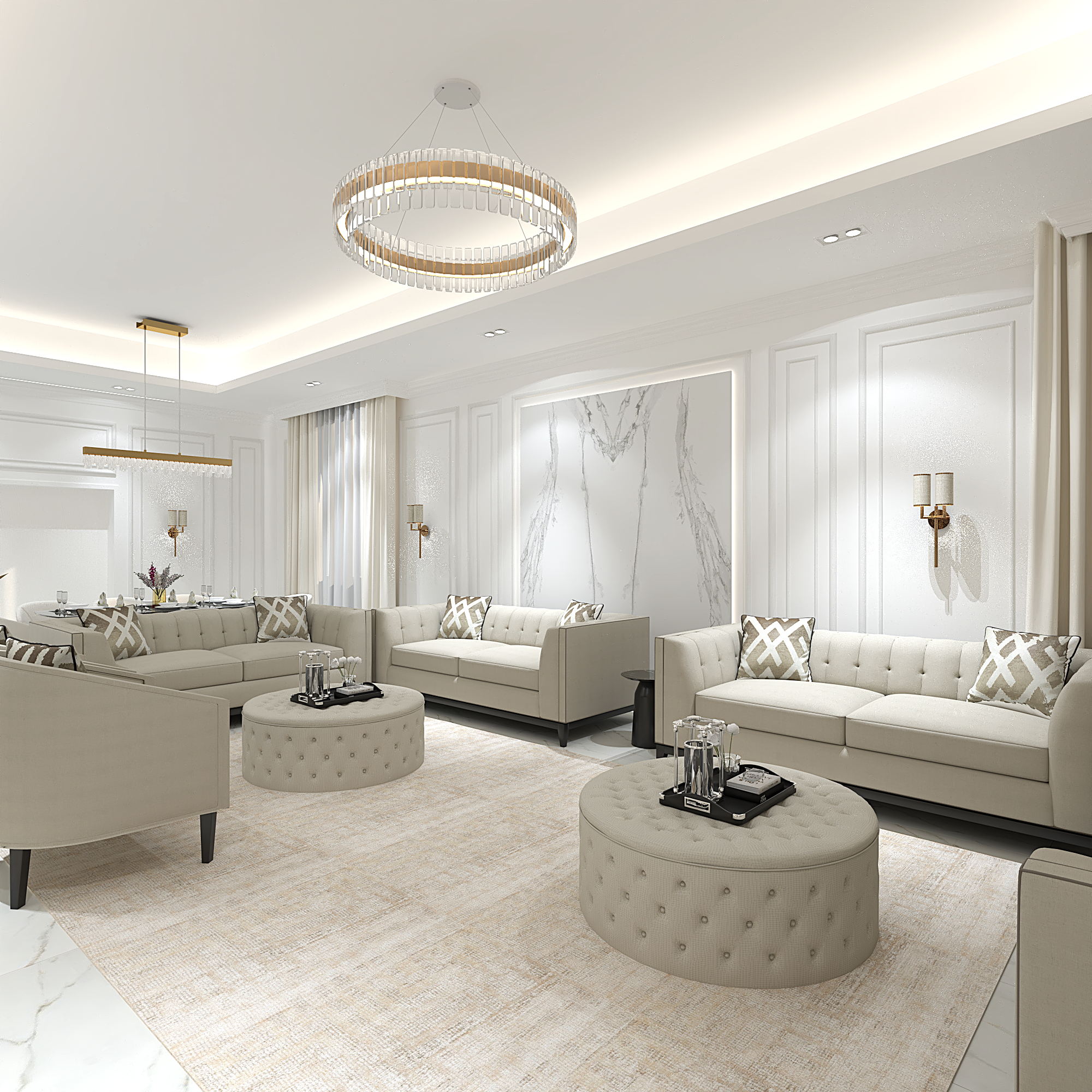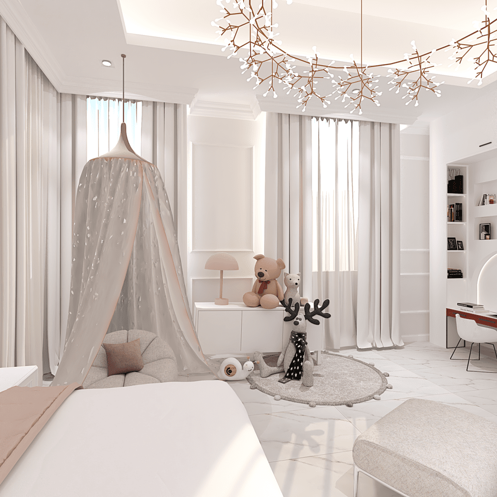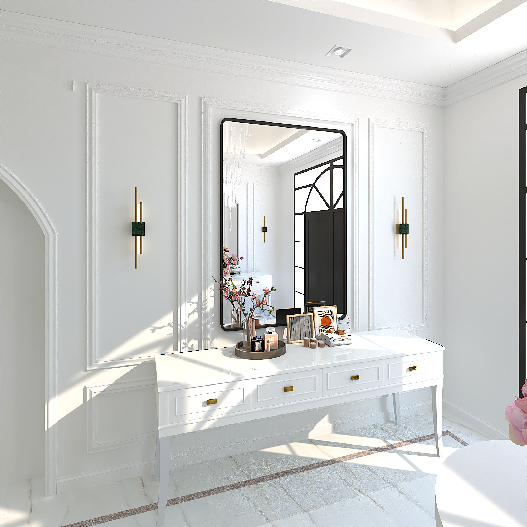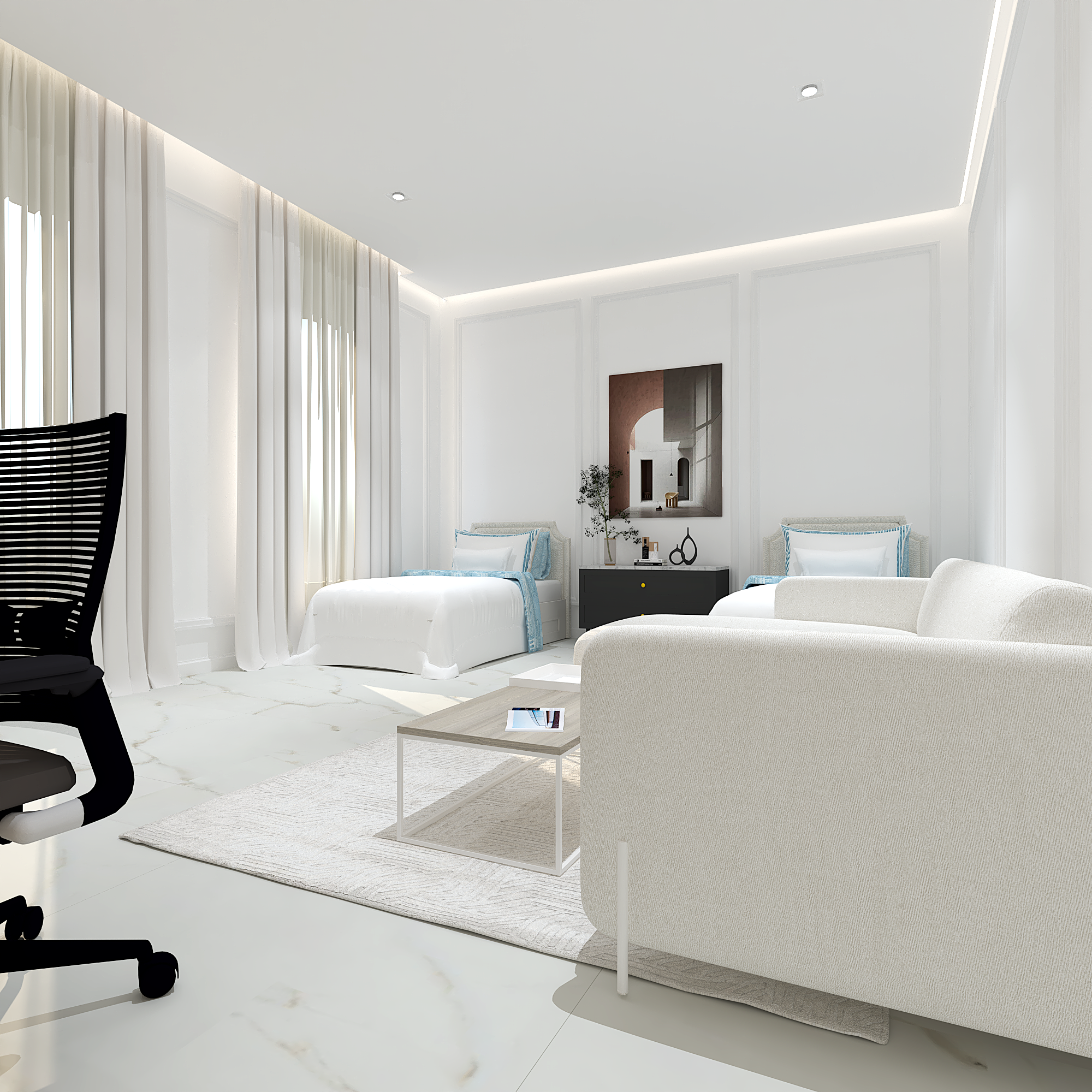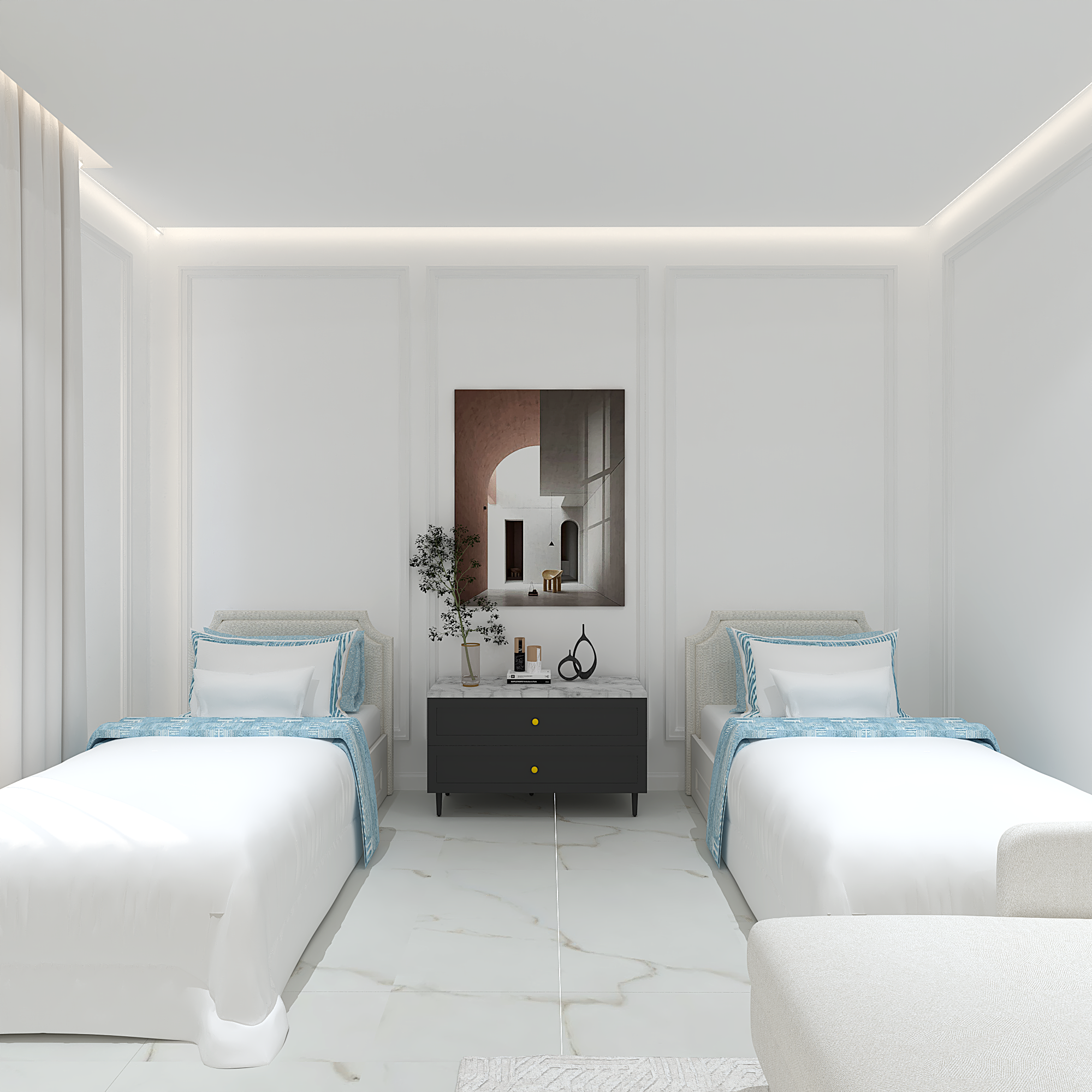We translated this vision through the design by incorporating simple classic frames throughout the villa, with white as the main color, creating a sense of comfort and openness in the space and design.