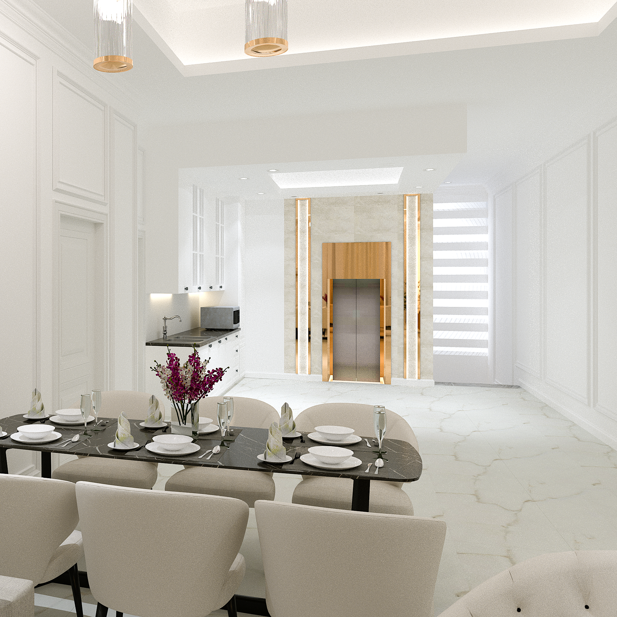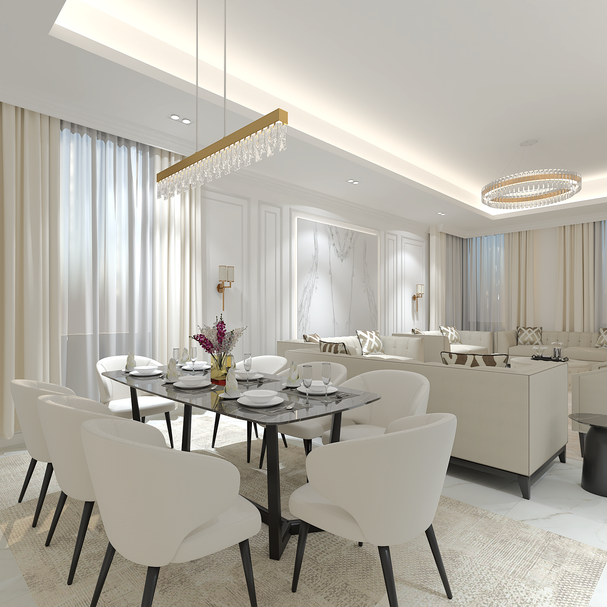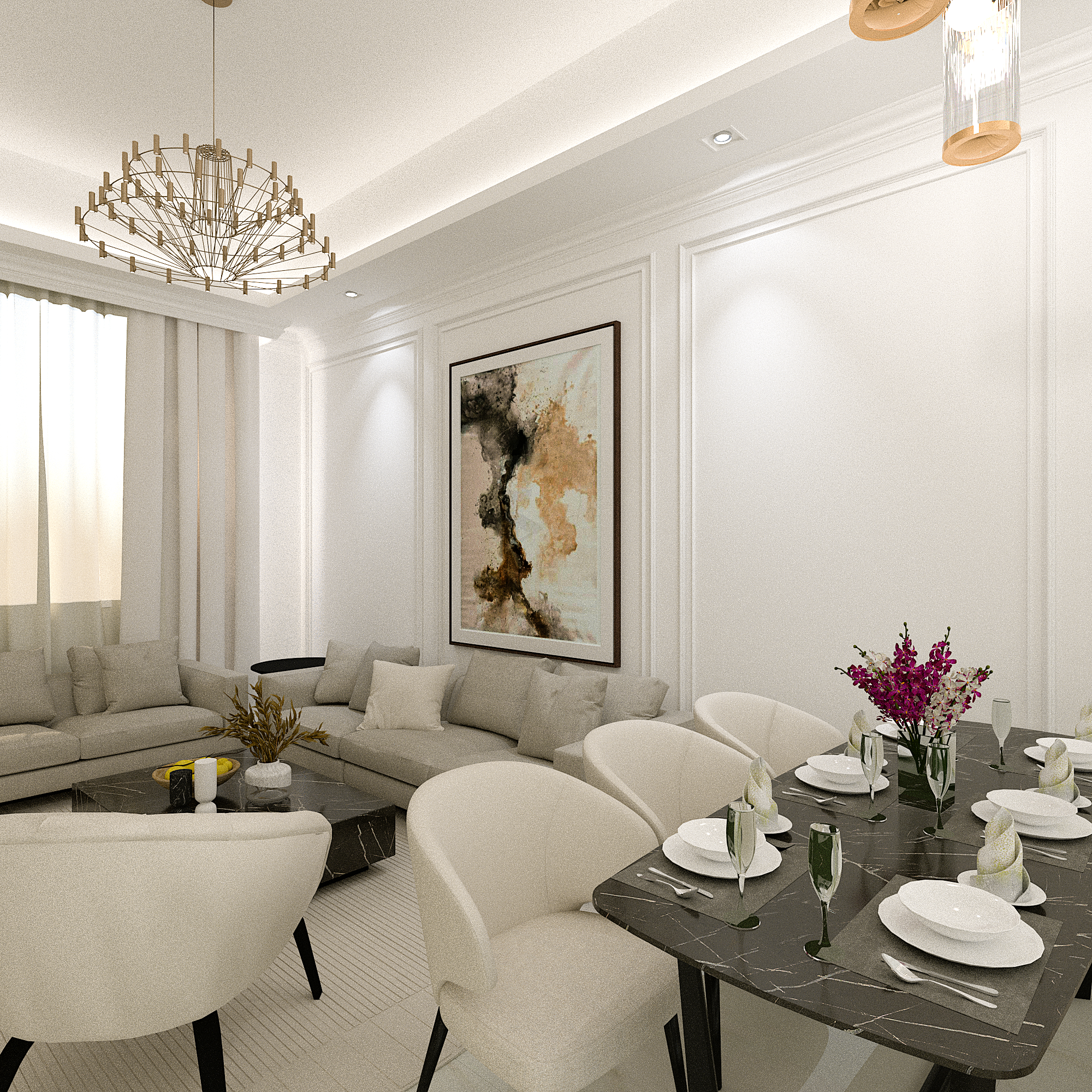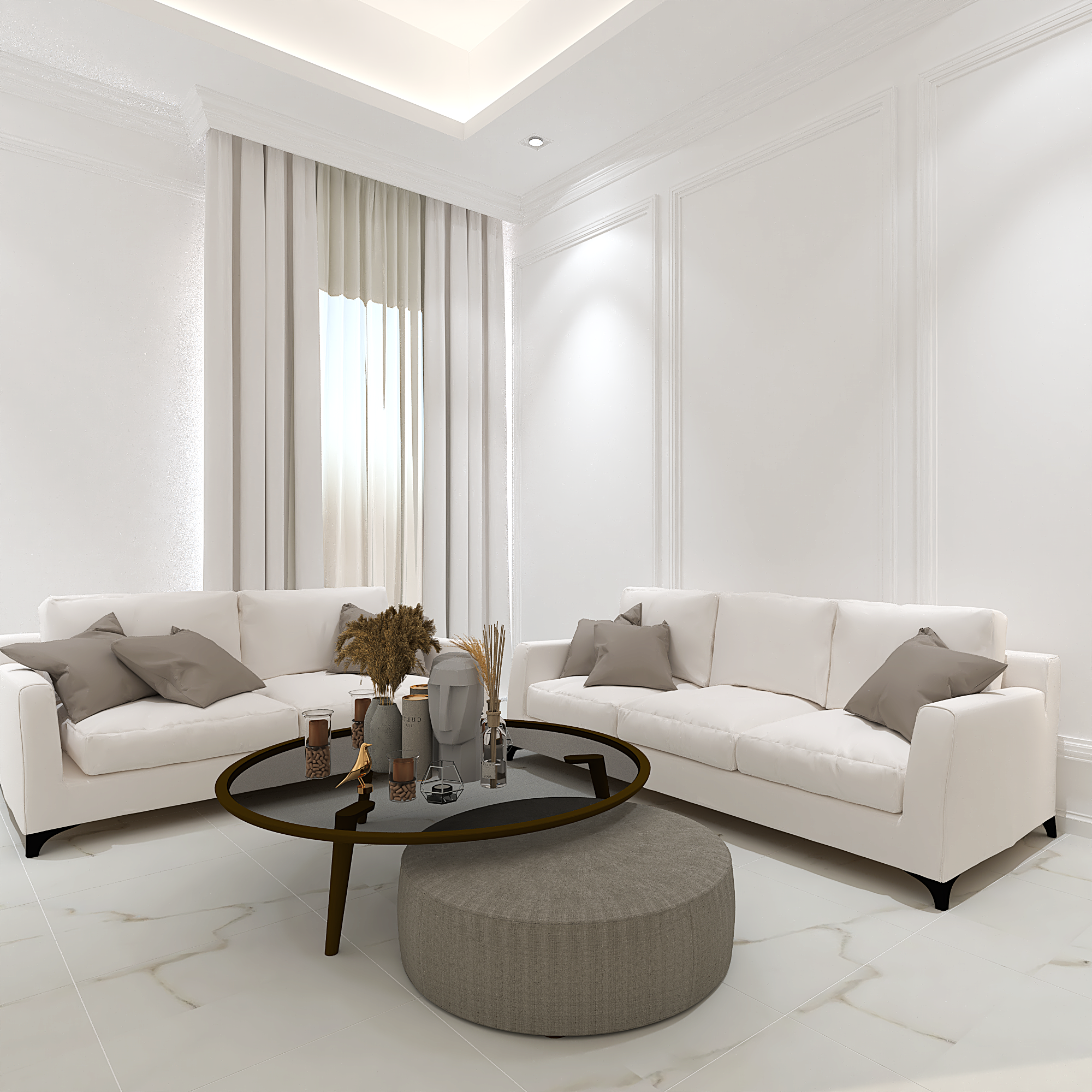 We translated this vision through the design by incorporating simple classic frames throughout the villa, with white as the main color, creating a sense of comfort and openness in the space and design.