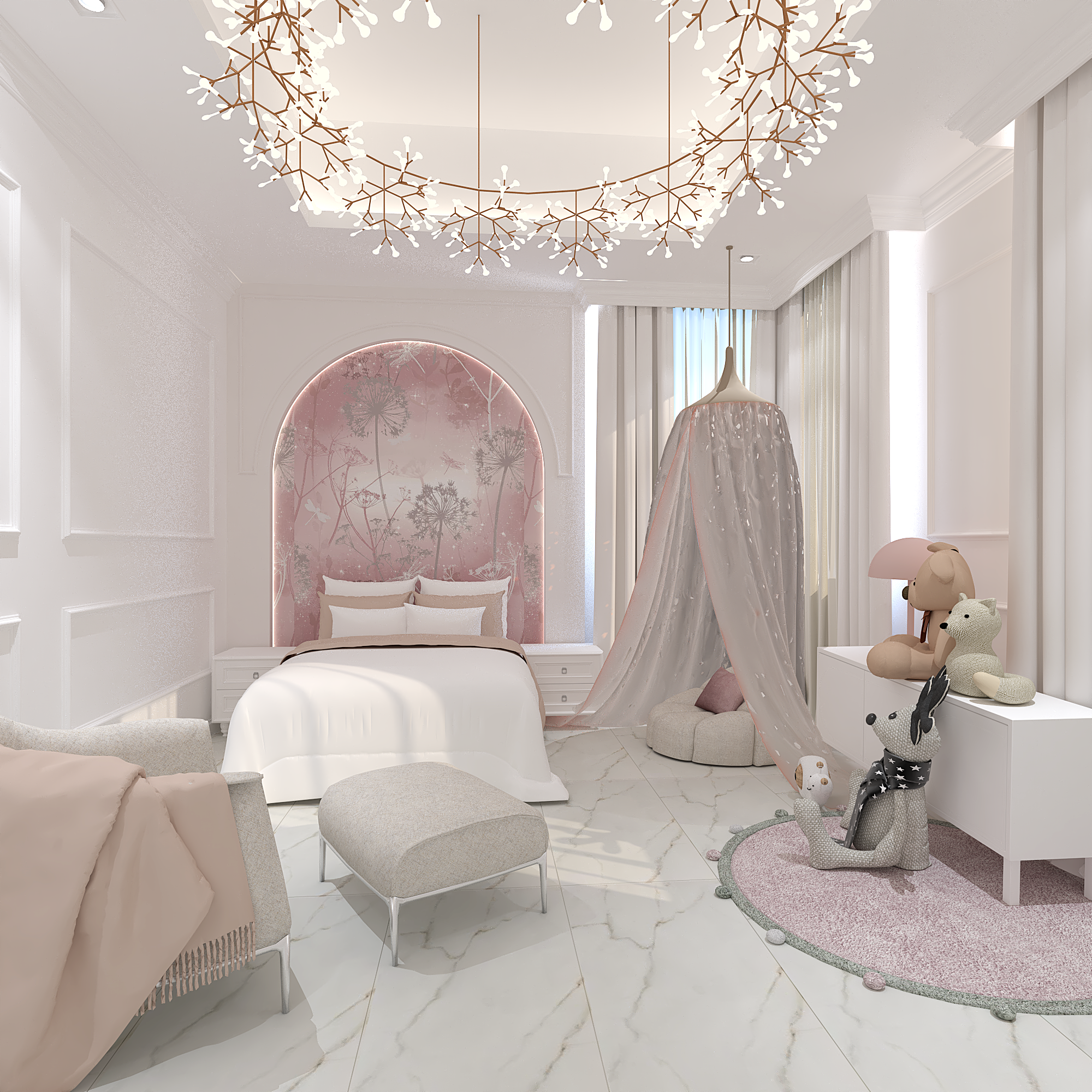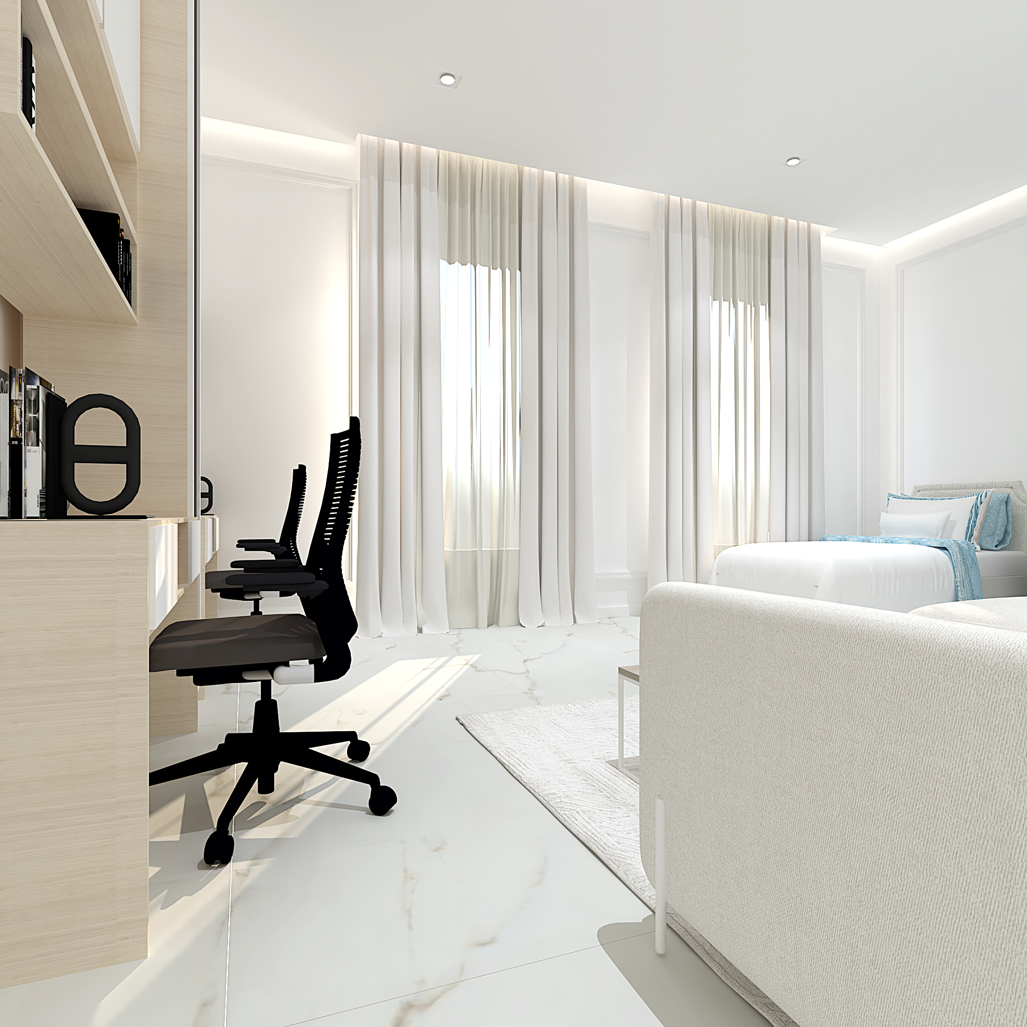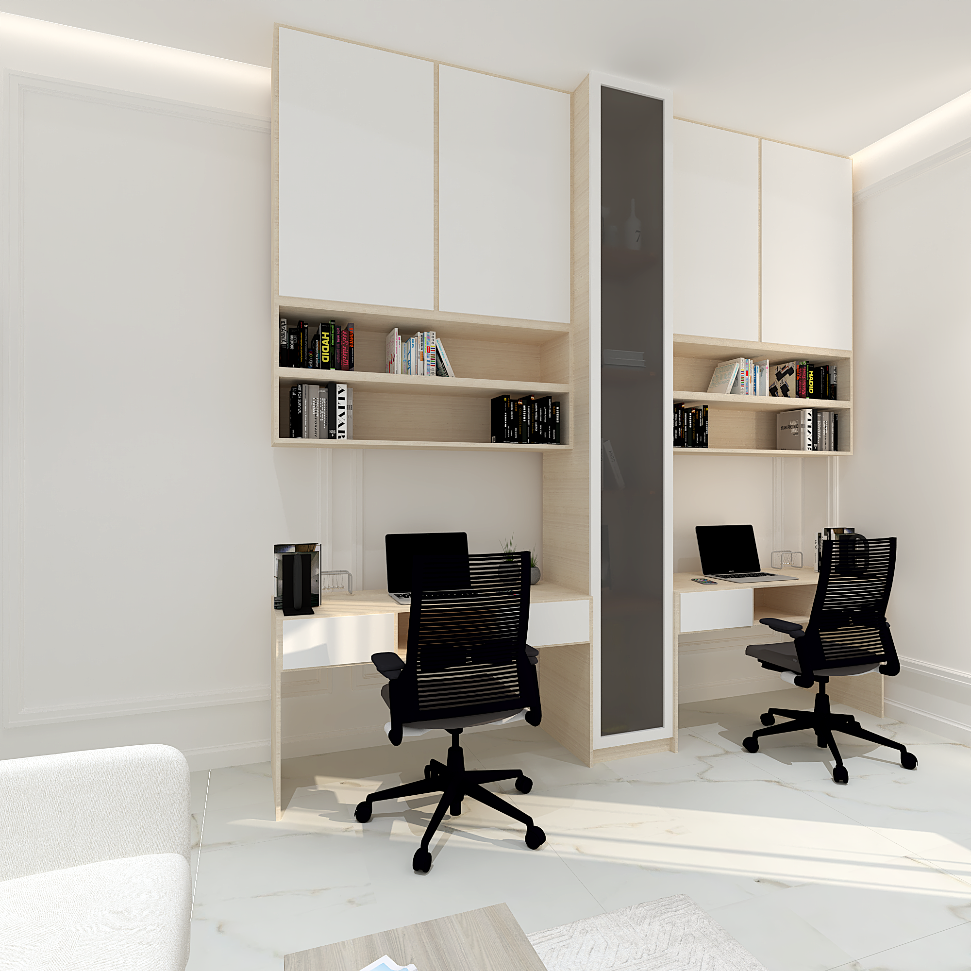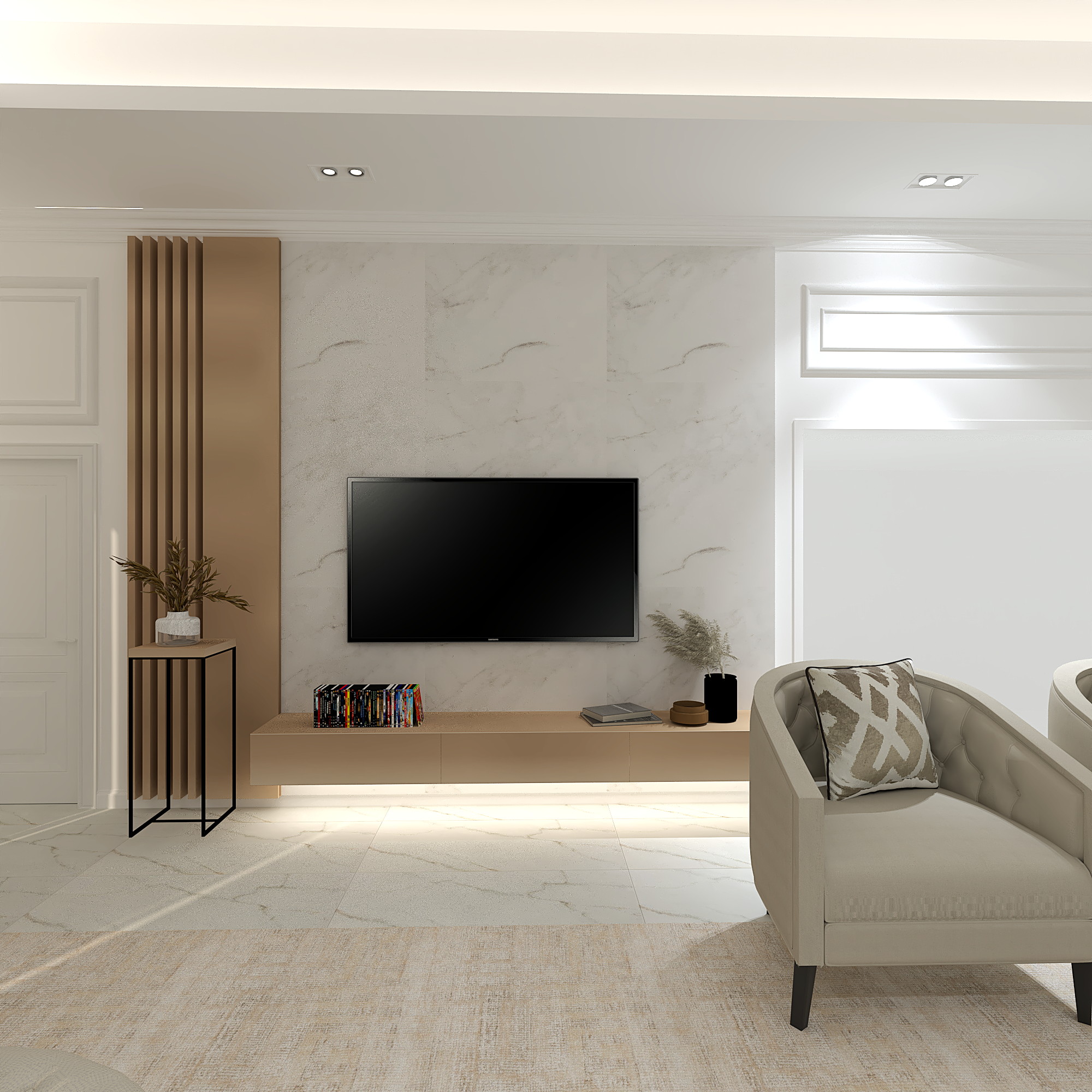 We translated this vision through the design by incorporating simple classic frames throughout the villa, with white as the main color, creating a sense of comfort and openness in the space and design.
