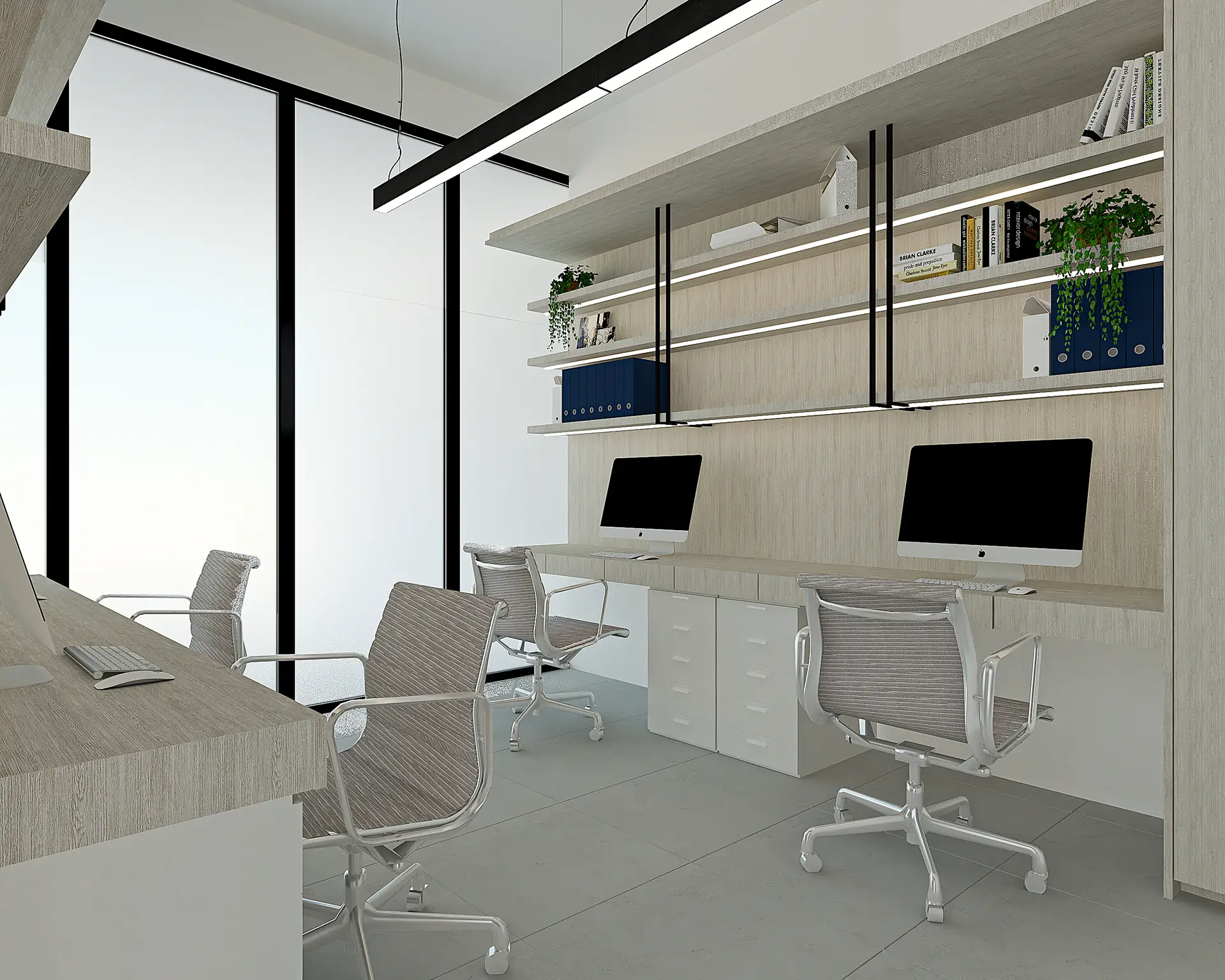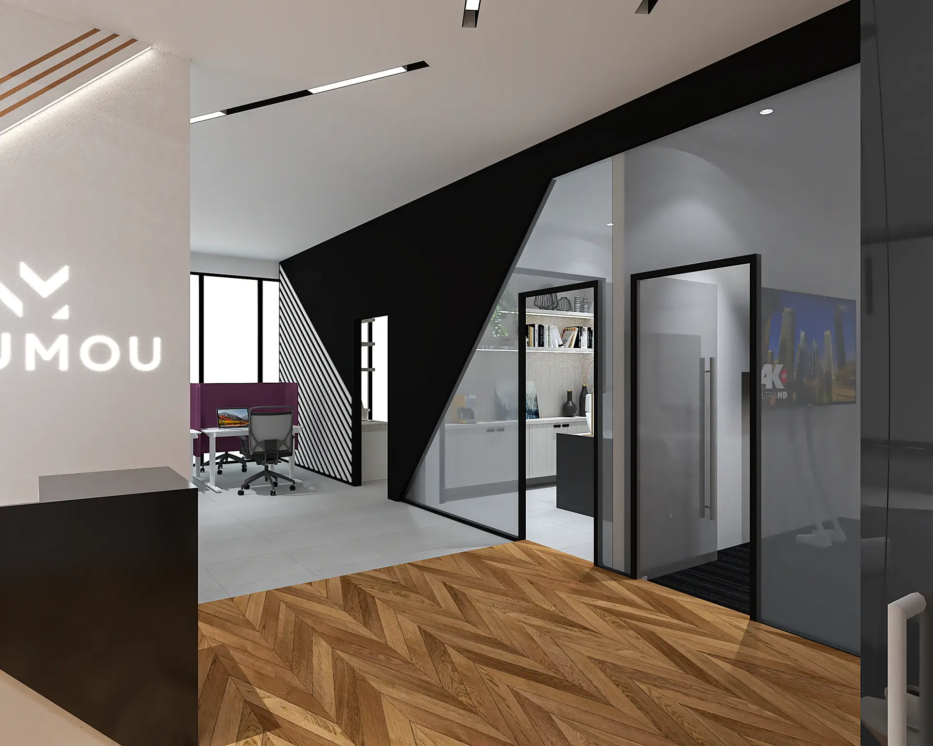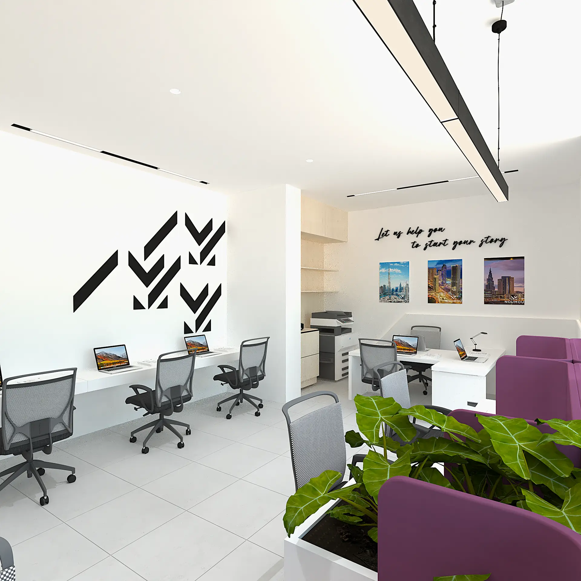 We drew inspiration for the interior design from the office’s logo and its represented dimensions, helping us create a unique design that reflects the office’s identity.