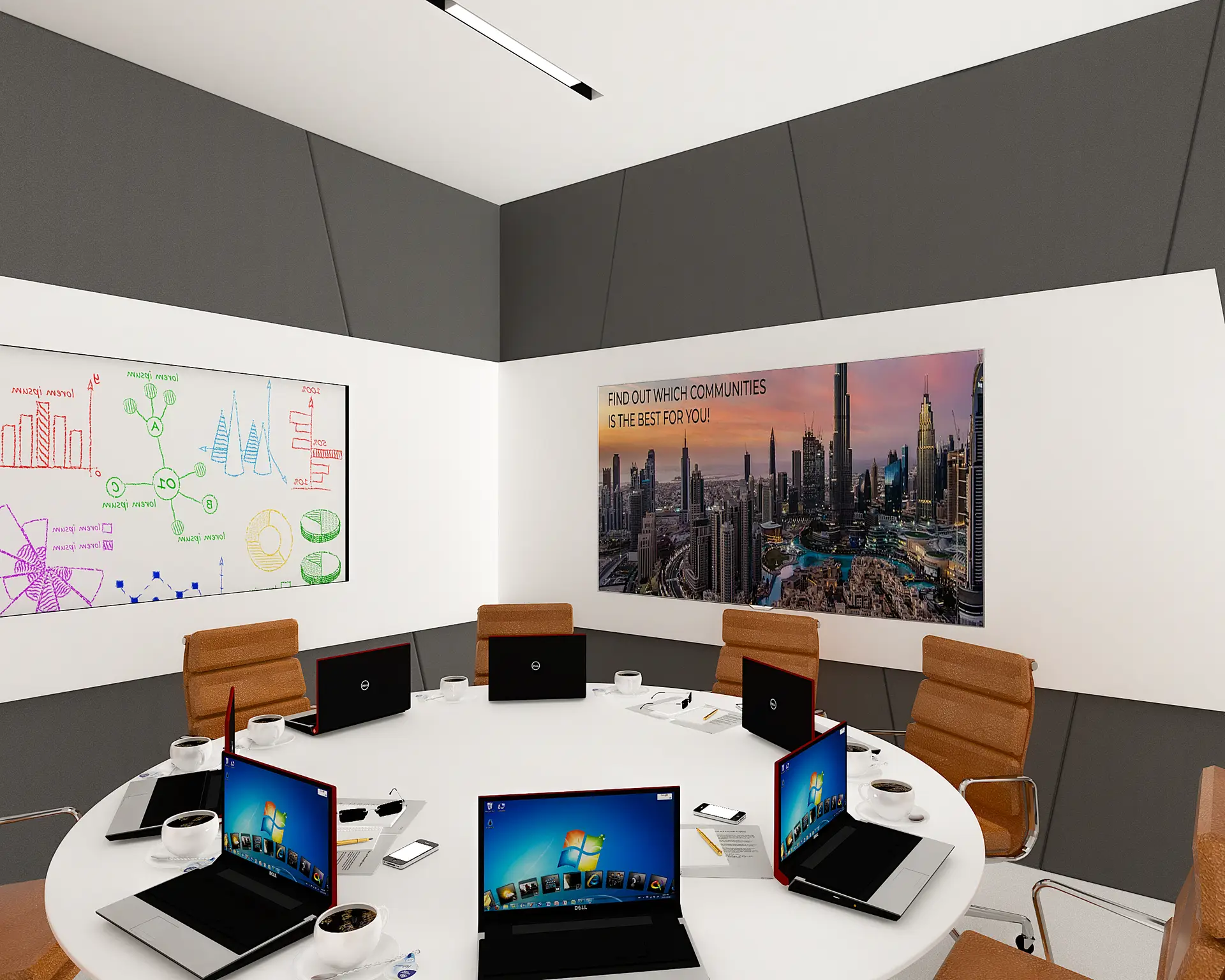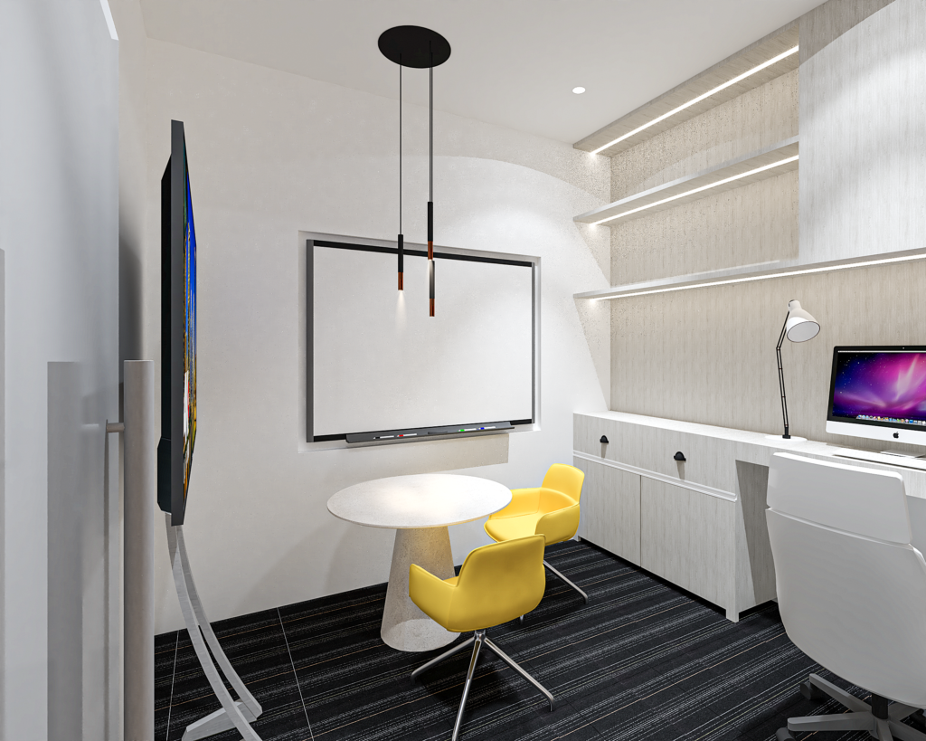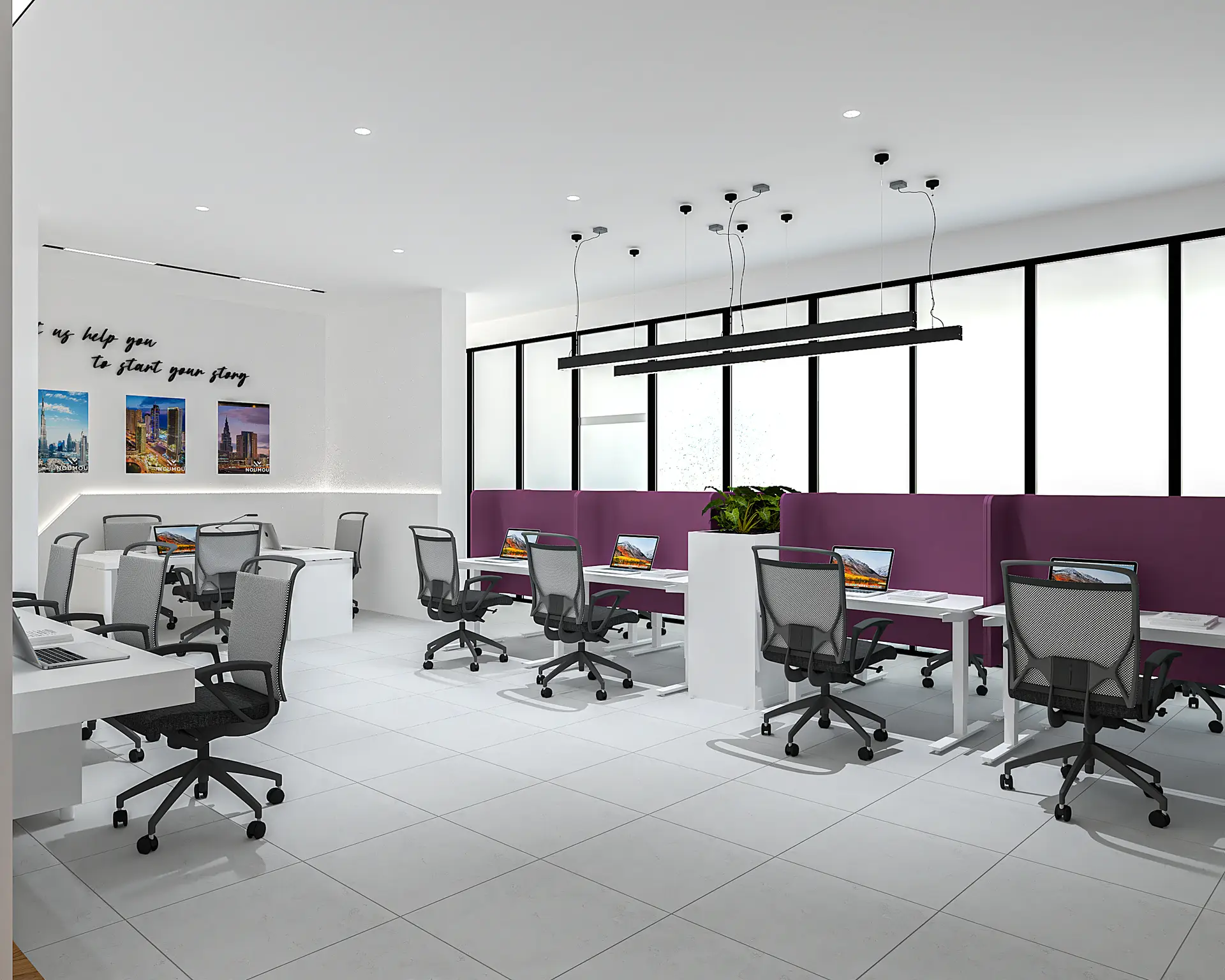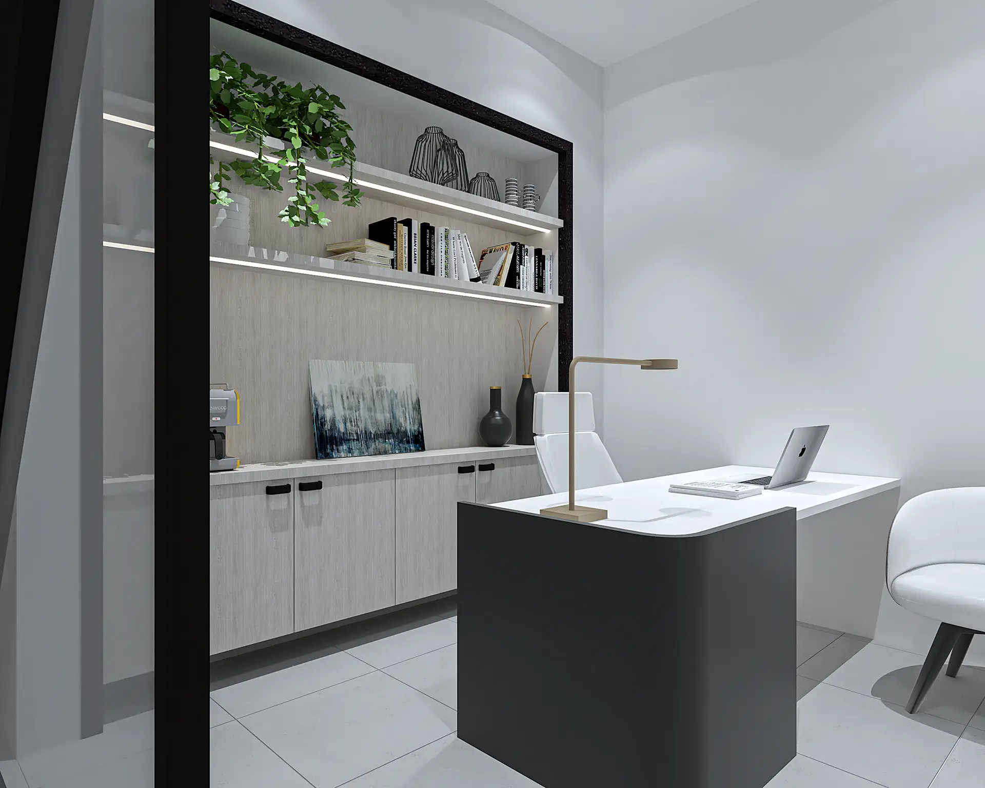 We drew inspiration for the interior design from the office’s logo and its represented dimensions, helping us create a unique design that reflects the office’s identity.
